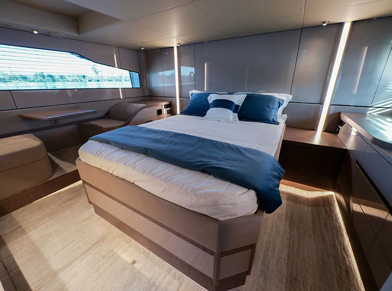 “The newest addition to the fleet is our 57 FLY, which debuted in November 2024. The new FLY series redefines on-water luxury with a bold design, unmatched flybridge entertainment, seamless water access, and an interior created in collaboration with superyacht designer, Luiz De Basto,” he excites.