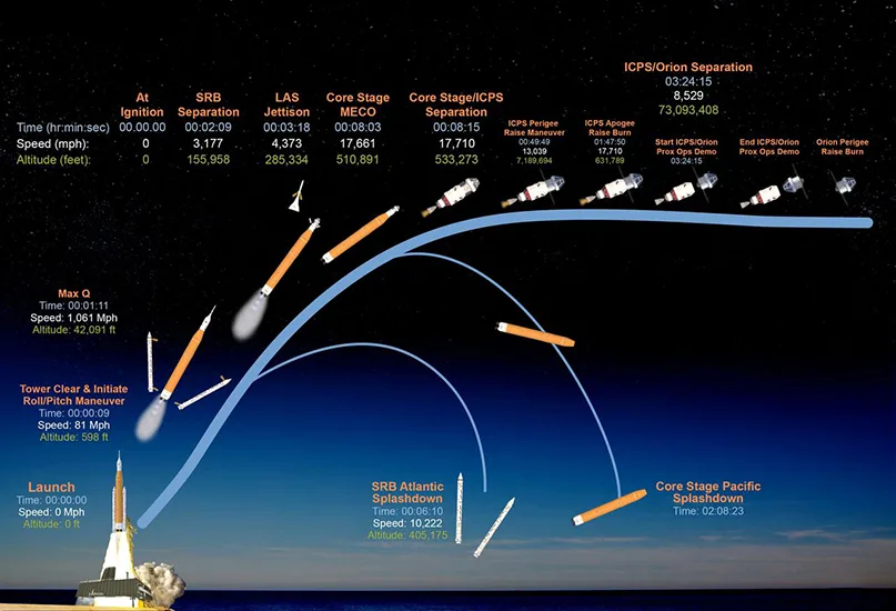 Orion will be launched on top of the SLS, initially propelled by solid rocket boosters, but after they are jettisoned along with the core stage, the Interim Cryogenic Propulsion Stage (ICPS) will assist in manoeuvring.